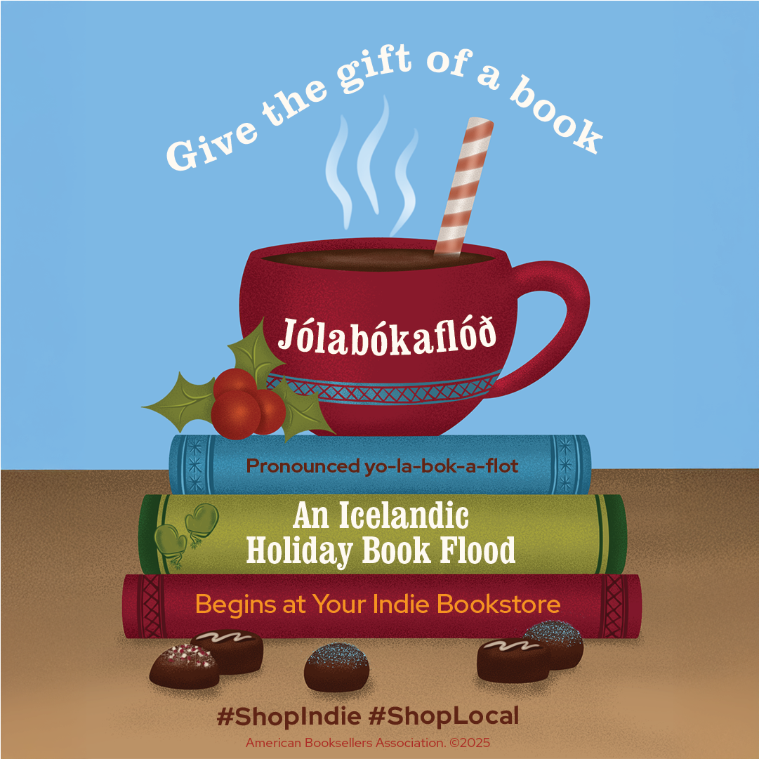 Icelanders have a lovely tradition of gifting books to each other on December 24 and spending the rest of the evening reading and drinking hot chocolate. Ask your local booksellers for recommendations for this bookish holiday, Jólabókaflóð. Season’s Readings!